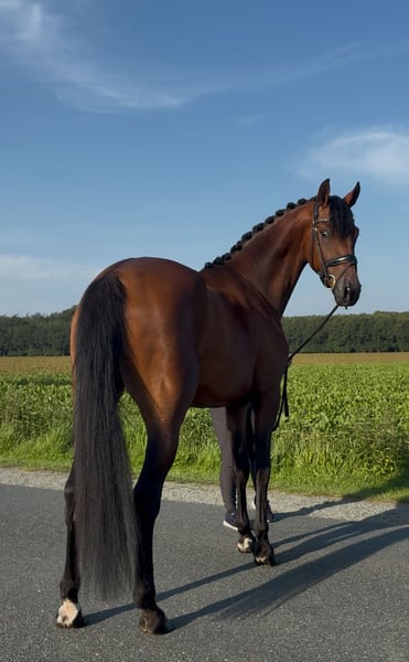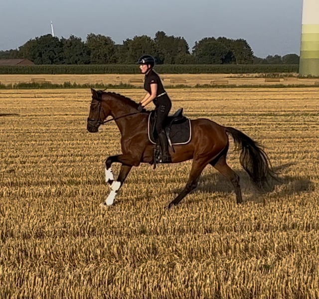 ⭐️⭐️⭐️Viconte x Zack ⭐️⭐️⭐️ 3.5-year-old gelding 1.68 m Vihuri Flying is a young horse that always wants to do everything right. Healthy with no defects/restrictions and a very good vet check. His absolutely kind and honest character, along with his very good rideability, offers a real prospect for the future. Three above-average basic gaits with great mechanics. In handling, with the farrier/loading, and in the field, he shows a lot of composure and calmness. Even in different arenas, he gives a great feeling. This gelding comes directly from the breeder and has grown up with very good and loving training. Vihuri is always outdoors and is also compatible with herds. If you are looking for a special training horse and partner, this horse is just right for you. Videos will be sent via WhatsApp (0176-27767762) upon request of the full name.
