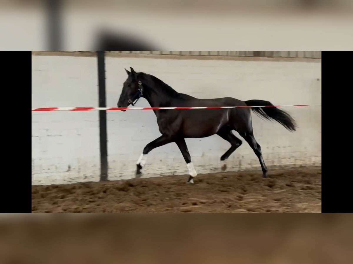 Mooie 2-jarige zwarte ruin uit de eerste jaargang van Skyline to b, uit een Baroncelli - Regazzoni moeder. Sportieve elegantie ontmoet beproefd Hannoveraans prestatiebloed. Zijn vader Skyline to b - een echte shootingstar onder Carl Hedin en gekwalificeerd voor het WK jonge dressuurpaarden onder zijn nieuwe eigenaresse en ruiter Yara Reichert. Volle broers en zussen van de moeder zijn succesvol in St. Georg geweest, voormalige Verdense elite veilingpaarden en goedgekeurde hengsten. Zo belooft deze jongeling een succesvolle dressuurcarrière na te streven. Ongecompliceerd in de omgang, altijd alert en zeer vriendelijk. Hij is ongeveer 166/68 +/- cm groot. Hij is opgegroeid in een kudde met leeftijdsgenoten, is gewend om regelmatig aan de smid voorgesteld te worden en te worden geladen. Momenteel staat hij met leeftijdsgenoten op de wei in Noord-Nederland en kan daar tot de herfst blijven. Heeft al een goede TÜV. Als veulen is hij door de Oldenburger onderscheiden met de veulenpremie en beschreven als "Een typvol veulen, mooi bergopwaarts gebouwd met elastische bewegingen die door het lichaam golven." Een video in vrijloop kan na contactopname worden verzonden.