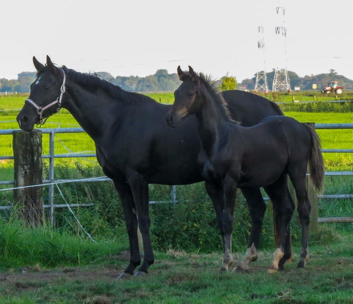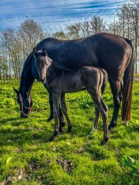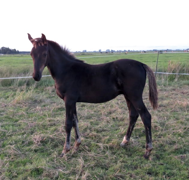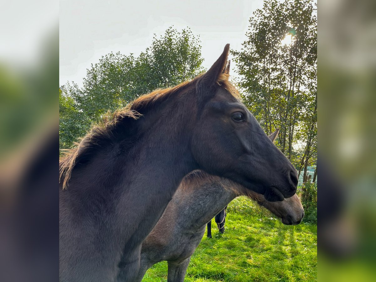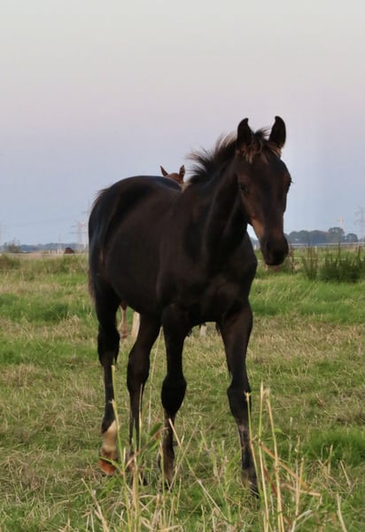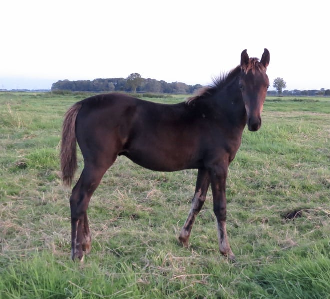Colt by Fair Deal OLD (Franklin x Fürstenball x Totilas, Oldenburger 1c main premium winner 2023) out of a dam by Devonport (Bundeschampion 2017) x London Lightning x Diamond Hit x Rubinstein I. The mares line produced the international Grand Prix horses Doktor/Shelly Francis and Rubel/Fanny Verliefden. Very people-oriented foal in the popular black colour. Endowed with very good basic gaits according to his pedigree.