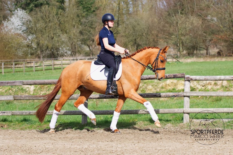Oldenburger Wallach • *2022 • ca. 1,58 m ⚜️ Fürst Samarant – Rubinstein ⚜️ ✨ Kompakter Youngster mit Top-Einstellung & Vielseitigkeit ✨ Dieser sympathische 4-jährige Oldenburger Wallach überzeugt nicht nur durch seine interessante Abstammung (Fürst Samarant x Rubinstein), sondern vor allem durch seine außergewöhnliche Rittigkeit, seinen Charakter und seine Vielseitigkeit. 👉 Noch nicht lange unter dem Sattel, zeigt sich jedoch bereits jetzt absolut unkompliziert, nervenstark und mit einer tollen Einstellung zur Arbeit. 👉 Altersbedingt noch jugendlich im Körper, mit viel Entwicklungspotenzial für die Zukunft. Mit seinem handlichen Maß von ca. 1,58 m ist er ideal für Reiter/innen, die ein sportliches, übersichtliches Pferd suchen – ohne dabei auf Qualität verzichten zu müssen. 👉 Ausbildungsstand: • Parcoursfertig • Kennt bereits Geländehindernisse • Sicher an Wasser & Tiefsprüngen 👉 Besonderheiten: • Läuft aktuell noch ohne Eisen • Selbst ohne Sattel oder mit Halsring problemlos zu reiten • Auch für Kinder und schwächere Reiter bestens geeignet • Sehr mutig, brav und unkompliziert • Denkt mit und zeigt sich extrem lernwillig • Vielseitig einsetzbar (Springen / Vielseitigkeit) Ein echtes Verlasspferd mit ganz besonderem Charakter – hier wächst ein Partner heran, auf den man sich in jeder Situation verlassen kann 🧡 💰 23 t. 🥕🥕🥕 📍 Standort: Freren 📲 Nähere Informationen unter: +49 173 3013499 🎥 Weitere Videos auf Anfrage