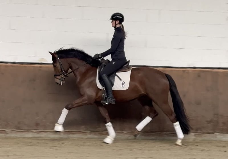 Dear prospective buyers, For questions or to arrange an appointment, please send us a WhatsApp message or an email. You can reach us on weekdays, preferably around midday. If that’s not possible, simply send a message and we will get back to you. We look forward to hearing from you! "Vicky" is a stunning chocolate-fox with exceptional quality that immediately captures everyone’s attention. Alongside his wonderful basic gaits, he stands out for his excellent rideability and a charm that’s simply irresistible. He is incredibly personable and a true pocket horse, just like his brothers Benni and Benno, who are already successfully competing in the big ring. Benni was successful at the Bundeschampionate for two years and is now placed at S-level with Friederike. Brother Benno is currently following in his footsteps with his new owner in Switzerland. A young horse with the best potential for a bright future in dressage competition. Directly from the breeder. Valid health certificate available.
