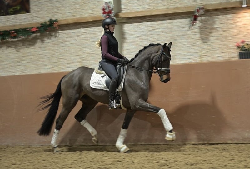 Dear Interested Parties, To schedule a test ride appointment, please send me a WhatsApp message. For further questions, I am available via WhatsApp during the day, and you can reach me best by phone between 4 PM and 7 PM. I look forward to hearing from you. www.angelina-devittorio.de ⭐️ Fiorano ⭐️ Age: 4 years (2022) Height: approximately 16.1 hh Pedigree: Federer x Dream of Glory Training level: Dressage horse at elementary level X-ray: Good radiographs available For sale is a highly talented young dressage horse with outstanding quality. This beautiful gelding impresses with his exceptional basic gaits in all three paces! Despite his young age, this handsome gelding already shows very good manners and a clear head. With remarkable expression and an excellent work ethic, this horse demonstrates impressive learning ability. A promising dressage prospect that aims to do everything right and has the potential for the big arena. Also very well-behaved and mentally clear in unfamiliar surroundings, very pleasant to ride, and a true gem in handling. Absolutely suitable for amateurs, though some experience with young horses is recommended given his training level. An absolute dream horse with outstanding quality, a calm and brave character, and plenty of go. ⚜️ Phone: 0171-3438949 ⚜️ a.devittorio@web.de ⚜️ https://www.ehorses.de/angelinadevittorio Facebook and Instagram: Angelina De Vittorio