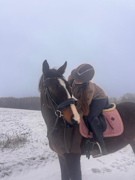 Zum Verkauf steht ein 2022 geborener Wallach, der uns menschlich ganz besonders ans Herz gewachsen ist. Er ist bei uns geboren und war von Anfang an als Verkaufspferd geplant – nicht wegen seiner jetzigen Thematik. Umso schwerer fällt uns dieser Schritt, denn wir hatten uns seine Zukunft ganz anders erträumt. Diese Entscheidung ist mit sehr viel Herzschmerz verbunden. Er ist ein herzensguter, verschmuster und verspielter Kerl, unglaublich menschenbezogen und im Umgang vielen Jungpferden weit voraus. Schmiede- und verladefromm, in jeder Lebenslage brav und unkompliziert, im Gelände sowie bei Auswärtstrainings zeigt er sich mutig und gelassen. Er möchte einfach alles richtig machen. Ein Pferd mit einem Charakter aus Gold und ehrlichem Wesen, das man einfach gernhaben muss. Aufgrund der damaligen Diagnose „zu lockere Kniebänder“ wurde er schonend angeritten. Er kennt Schritt, Trab und Galopp in der Halle, erste kleine Sprünge unter Sattel und Ausritte. Das letzte Dreivierteljahr wurde er – ohne Wissen über die spätere Diagnose – ganz normal angeritten. Vom Reiter aus waren seine Besonderheiten kaum zu merken: manchmal etwas unbeholfen, jungpferdetypisch. Leider zeigten sich mit der Zeit weiterhin Auffälligkeiten der Hinterhand. Nach weiterer Abklärung stehen Verdachtsdiagnosen wie Ataxie sowie hinten rechts eine Tendenz Richtung Hahnentritt im Raum. Die Symptomatik ist nicht ganz „klassisch“: im Schritt und engen Wendungen wirkt er oft, als wüsste er nicht genau, wo er die Füße hinsetzen soll. Im Trab etwas sichtbar, im Galopp weitgehend unauffällig. Aber !nie! lahm. Rückwärtsrichten ist problemlos möglich, sowie keine Probleme beim Antraben oder Angaloppieren.. Aus Verantwortung und zum Wohl des Pferdes verkaufen wir ihn vorsorglich als bedingt reitbar. Wie sich seine Entwicklung weiter gestaltet, kann man nicht sagen. Vorreiten natürlich möglich. Auch einige Videos vorhanden! Wir wünschen uns für ihn Menschen mit Herz, Geduld und Pferdeverstand sowie Jungpferdeerfahrung – einen Platz, an dem er geliebt wird und einfach Pferd sein darf. Er ist ein absolutes Herzpferd, das es verdient hat, so genommen zu werden, wie es ist. Wir denken, dass er im Freizeitbereich und als Ausreitpferd sehr gut aufgehoben wäre. Nur an Offenstallplatz, Bewegung tut ihm gut. Kein Notverkauf! Nur an Bestplatz! Platz vor Preis Zähne gemacht (September 25), letzter Chiro vor 2 Wochen, entwurmt und geimpft. Weitere Infos zu Verlauf, Diagnostik und Behandlungen gerne persönlich. 💛