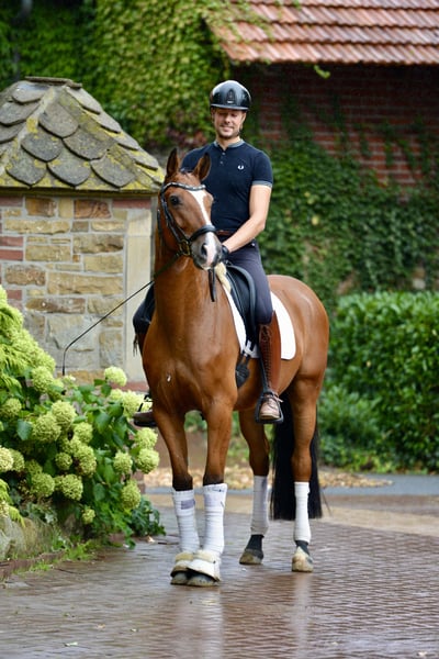 ❤️BENNEDICTUS❤️ 2021 Oldenburg gelding by Bonds-Stedinger https://youtu.be/fWMiyOJ6wVE?si=cLCk35lT1DEl7GRU Approximately 16.1 hh, covers well May I introduce: Bennedictus ✴️ Dressage Horse A placered ✴️ Lots of rhythm and cadence ✴️ Well-trained, always performance-ready ✴️ From a successful sport horse lineage ✴️ Excellent horse for ambitious riders, also ideal as a future Children’s or Junior’s horse Digital X-ray examination available. ✴️ Location: 49586 Neunkirchen