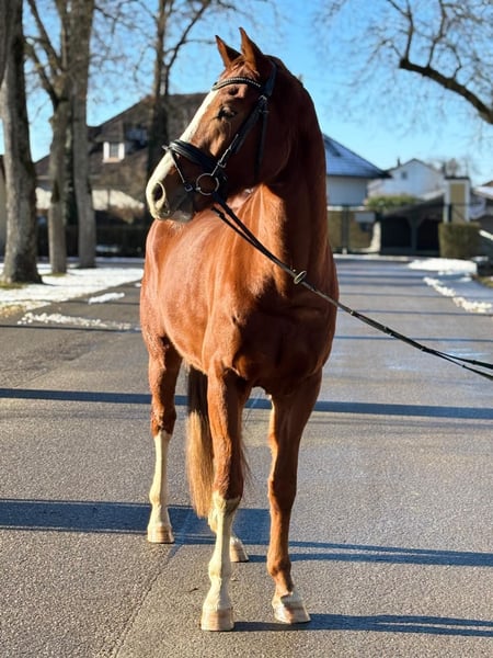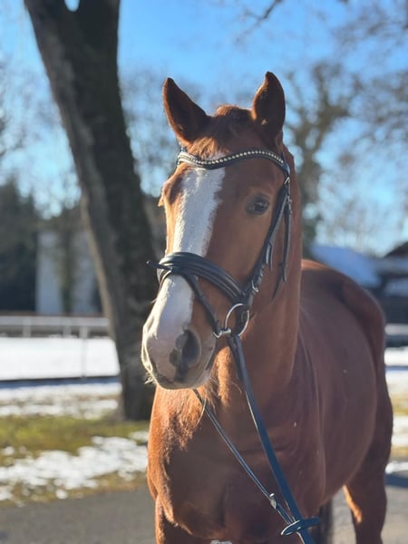 Zum Verkauf steht ein vielversprechender Oldenburger Wallach, geboren im Jahr 2022. Der sympathische Fuchs überzeugt durch sein ansprechendes Exterieur und sein ausgeglichenes Wesen. Der junge Wallach ist bereits gut geritten und zeigt viel Potenzial für den Dressursport. Seine Bewegungen sind taktklar, schwungvoll und ausdrucksstark, was ihn zu einem vielversprechenden Nachwuchspferd macht. Durch seine freundliche und kooperative Art ist er sowohl für den erfahrenen Reiter als auch für den ambitionierten Nachwuchs geeignet. Dieses Pferd verbindet typische Oldenburger Qualität mit viel Talent und einem angenehmen Temperament. Eine echte Chance für alle, die ein vielversprechendes Dressurpferd suchen. Für weitere Informationen und Terminvereinbarungen stehe ich gerne zur Verfügung.
