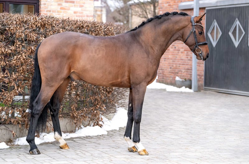 Dreamy Oldenburg Stallion For sale is an impressive Oldenburg stallion, born in 2022. With a height of 168 cm, he is a true eye-catcher and impresses with his elegant presence. This brown stallion shows great potential in dressage and already possesses promising basic gaits. His friendly and open nature makes him an ideal partner for ambitious riders who want a reliable and talented equine partner for both training and competition. He is well-mannered, easy to handle, and has already gained initial experience in various environments. This stallion is looking for a loving home where he can be nurtured and challenged. If you are interested or would like more information, please feel free to contact me. Visit us and see for yourself this extraordinary horse!