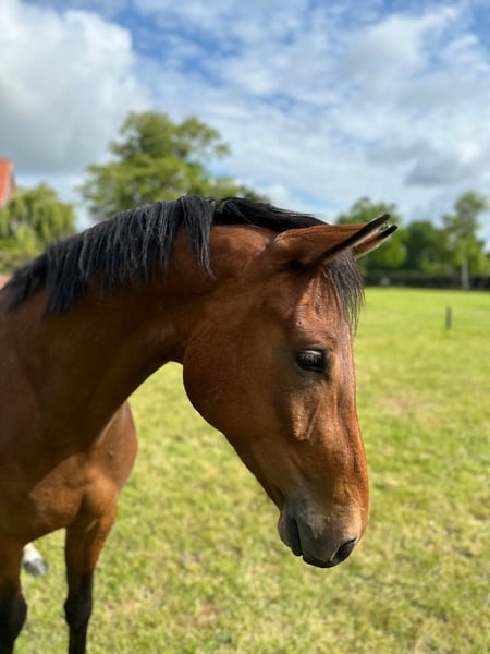 Zum Verkauf steht ein wunderschöner Oldenburger Wallach, geboren im Jahr 2022. Mit einem Endmaß von ca. 168 cm ist er ein toller Partner für die Dressur. Dieser talentierte Wallach überzeugt nicht nur durch seine hervorragenden Bewegungen, sondern auch durch sein ausgeglichenes Temperament und sein freundliches Wesen, er hat einen super Charakter und ist im Umgang unkompliziert. . Er zeigt bereits vielversprechende Ansätze in der Dressurausbildung und hat das Potenzial, sich in diesem Bereich weiterzuentwickeln. Er wächst bei uns im Herdenverband auf, ist regelmäßig beim Hufschmied vorgestellt und regelmäßig entwurmt/geimpft worden. Er wird ein toller Partner für Sport oder Freizeit. Der Vater For Dance ist rittig, klar im Kopf, intelligent und lernwillig. Von Dressurpferdeprüfungen und Bundeschampionatsauftritten bis zu Dressurprüfungen der Klasse S* sicherte er sich zahlreiche Platzierungen und Siege. Er gewann mit Ninja Sosath die Titel "Landesmeister der ländlichen Reiter" in Rastede und "Deutscher Amateur Champion" in Münster-Handorf sowie fünf Dressuren der schweren Klasse. Ein Hengst, der an Souveränität, Leistungsbereitschaft, Typ, Charakter und Bewegungsqualität keine Wünsche offen lässt. Bei Interesse oder weiteren Fragen stehe ich Ihnen gerne zur Verfügung. Videos können gerne zugeschickt werden. Lassen Sie sich diese Gelegenheit nicht entgehen und vereinbaren Sie einen Besichtigungstermin! Angaben zum Mutterstamm: https://horsetelex.de/horses/pedigree/2213062/belinga