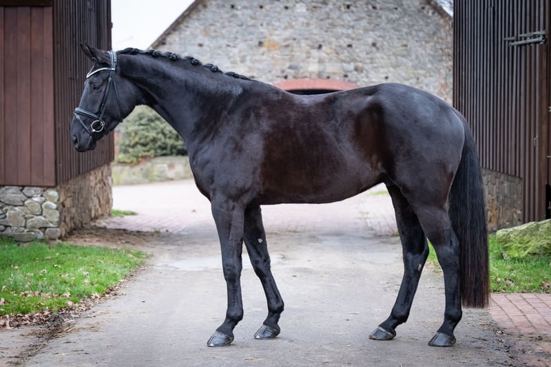 ⚜️ For Sale ⚜️ * Gelding * Born 2021 * Approx. 16.9 hh * Fantastic / Martinez / Donautanz * X-rays available A well-behaved gelding with good conformation, shown here in a dark coat. Very easy and calm in handling. Under saddle, he proves to be very rideable and eager to learn. Currently competing at Dressage E level. An excellent young horse for the ambitious sport and leisure rider. If you would like to meet this charming gelding, please contact us at the following phone number: … 0173/9954104 📞