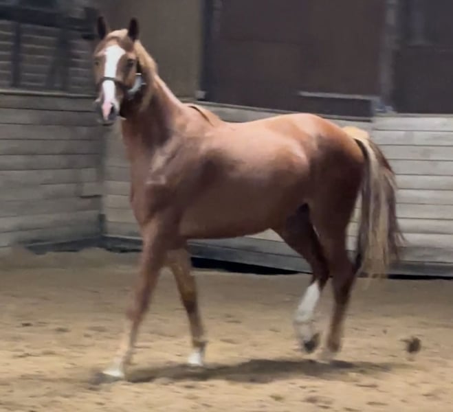Verkauft wird ein dreijähriger Fuchswallach mit blonder Mähne und drei sehr guten Grundgangarten. Solide anlongiert und gerade angeritten Seine Mutter von LÉspoir war bis M Dressur platziert, bevor sie in die Zucht ging. Sie hat einen tollen freundlichen Charakter und sie war sehr sehr rittig und ganz ganz klar im Kopf! Direkt vom Züchter, der seine Pferde auch selbst aufzüchtet. Im Winter in seinem Aktivstall und die Sommer auf großen 24 Stunden Weiden. Die Pferde kommen regelmäßig zum Schmied, bekommen regelmäßig die Zähne gemacht und Mineralfutter ist auch selbstverständlich. Ebenfalls sind alle Pferde geimpft und regelmäßig entwurmt. Der Züchter bekommt jedes Jahr 5-10 Fohlen und verkauft sie, weil er nun mal nicht alle behalten kann ;) Gerne einen Termin zum Kennenlernen, gerne auch per Whatsapp unter 015736343268, vereinbaren. Unter der Woche oder am Wochenende, beides passt gut! Standort ist die Reitsportanlage Bartmann Jakob Hammel Str. 10, 67550 Worms Die Ansprechpartner dieses Inserates sind lediglich als Kontaktperson, wie zum Beispiel Reiter, Mediabeauftragte usw, anzusehen und sind nicht gleichzeitig Eigentümer des angebotenen Verkaufpferdes.