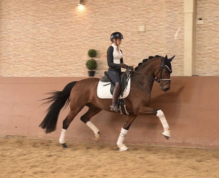 Liebe Interessenten, Für Terminvereinbarungen Probereiten senden Sie mir bitte eine WhatsApp. Für weitere Fragen bin ich tagsüber per WhatsApp erreichbar, telefonisch erreichen Sie mich am Besten zwischen 16 und 19 Uhr. Ich freue mich auf eine Kontaktaufnahme www.angelina-devittorio.de ⭐️Fynch Cookie⭐️ • Alter: 5 Jahre (2021) • Größe: 1,63 m Abstammung: Fynch Hatton x Bordeaux Ausbildungsstand: DressurpferdeA-Niveau, L Lektionen begonnen • AKU: gute Röntgenbilder vorhanden Zum Verkauf steht ein herausragender fünfjähriger Sohn des Fynch Hatton, der mit drei exzellenten Grundgangarten und Championats-Qualität überzeugt. BreeFood’s Fynch Cookie begeistert insbesondere durch seine beeindruckende Trabmechanik mit aktivem, kraftvoll untertretendem Hinterbein. Seine bergauf angelegte, ausdrucksstarke Galoppade zeigt bereits jetzt beste Ansätze zur Versammlung. Auch sein Schritt ist von überdurchschnittlicher Qualität und lässt keine Wünsche offen. Neben seinen sportlichen Qualitäten punktet er mit einem hervorragenden Charakter: stets freundlich, menschenbezogen und mit viel Freude bei der Arbeit. Er ist angenehm zu reiten und macht sowohl im täglichen Umgang als auch in der Ausbildung große Freude. Direkt vom Züchter stammend, wurde Fynch Cookie schonend und pferdegerecht ausgebildet und auf seine weitere sportliche Laufbahn vorbereitet. Er stammt aus einem hochinteressanten Sporterfolgreichen Mutter Stamm. Wer für die kommende Saison ein vielversprechendes Nachwuchspferd mit Championats-Potenzial sucht, wird hier fündig. Ein absolutes Traumpferd, das bereit ist, direkt loszulegen und Erfolge zu sammeln. ⚜️Tel: 0171-3438949 ⚜️a.devittorio@web.de ⚜️www.angelina-devittorio.de / https://www.ehorses.de/angelinadevittorio Facebook und Instagram Angelina De Vittorio Videos bitte per WhatsApp 00491713438949