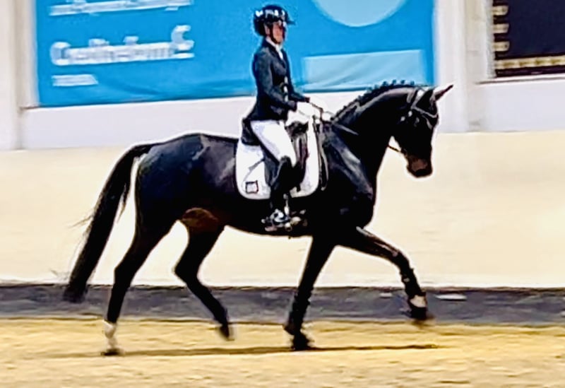 King of Roses is a now 5-year-old black-brown gelding who impresses with his presence, rideability, and potential. The charming gelding is already experienced in competition and successfully placed second in his first Dressage Horse A class. Under saddle, he consistently demonstrates motivation, willingness to learn, and a very pleasant ride. His excellent rideability and balanced temperament make him a reliable partner for daily training. King of Roses comes from a very strong dam line and offers excellent prospects for further sporting development. He possesses a lot of potential, combined with natural elegance and a striking appearance that makes him a real eye-catcher. A talented young gelding for riders who value quality, character, and development opportunities. The horse is currently in professional training and can be viewed at any time. A detailed video can be provided upon request. A recent health check (including back X-rays) is available.