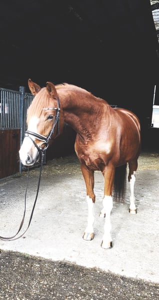 Chercheur d'attention ? À vendre, un magnifique hongre alezan avec une robe particulièrement attrayante, mesurant 1,70 m au garrot. Origines : De Niro Gold x Castellini Ce joli hongre séduit non seulement par son apparence élégante, mais surtout par son caractère doux et câlin. Au quotidien, il se montre très proche de l’homme, obéissant et facile à vivre – un véritable coup de cœur. Sous la selle, il est motivé et prêt à donner le meilleur de lui-même. Actuellement encore un peu réservé face à son environnement, il possède déjà une expérience en compétition et gagne en confiance. Avec un entraînement adapté, c’est un partenaire prometteur pour des cavaliers de loisir ambitieux ou pour le sport de compétition. Il est en bonne santé et possède un certificat vétérinaire en règle. Pour toute prise de contact sérieuse, n’hésitez pas à nous envoyer un message. Plus d’informations sur demande.