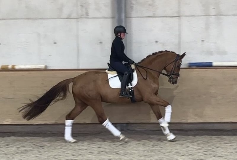 ✔️Age: 5 years (2021) ✔️Height: approximately 16.1 hh ✔️Pedigree: Bonds x De Niro x Stedinger ✔️Training Level: Dressage Horse A ✔️Health: Good X-rays available; due to a slight gait irregularity in walk, he is being sold at a significantly reduced price. This does not limit him in any way. ✔️Location: Schorer Stud, Frankenhofener Str. 3, 86860 Jengen/Weicht A true eye-catcher with a special charisma. This colorful chestnut gelding impresses with his extraordinary markings: four white stockings, a beautiful blaze, and dark spots on the hindquarters – a horse with high recognition value. He is harmoniously built in a rectangular frame and well-constructed uphill, with a correct, athletic physique. Under saddle, he demonstrates lovely, relaxed movements. He is still relatively inexperienced in terms of riding, but from the start, he has been very straightforward, well-behaved, and honest. Currently, he is at a solid Dressage Horse Level A and performs all tasks calmly and with enjoyment. In handling, he is an absolute buddy: friendly, people-oriented, and pleasant in every situation. He gets along very well with other horses and is familiar with turnout, lunging, hacking, and normal riding routines. He also proves to be reliable and fearless when hacking out. The gelding is shoe- and loading-safe. In the current video, he is shown barefoot, as he is not wearing shoes at the moment. He is regularly dewormed and vaccinated, and a current health certificate is available. For completeness, we note that he shows a slight irregularity in gait in walk, which occasionally resembles a mild pigeon-toed gait. This feature is purely visual, appears only in walk, and does not restrict him in any way in riding. For this reason, he is being offered at a very fair, below-market price. We are looking for an advanced amateur rider seeking an honest, uncomplicated horse for daily dressage fun – equally suitable as a reliable leisure and trail horse.