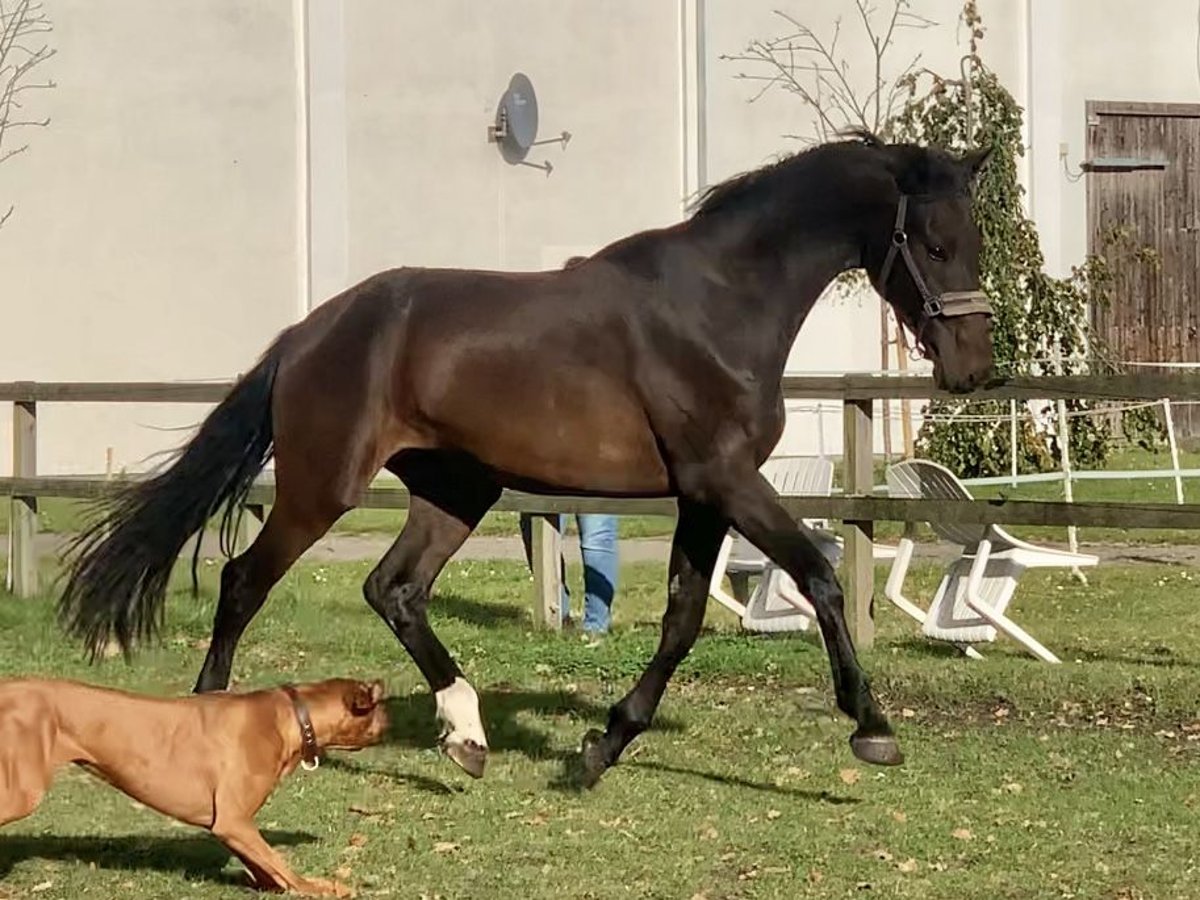 Vignon is an impressive Oldenburg gelding who impresses with his elegance and potential. He has a fantastic pedigree, three very good basic gaits and, at the age of 3, has a very kind, relaxed and serene character. His noble and large-framed appearance make him a real eye-catcher. Perfect for riders looking for a talented partner to train themselves. X-ray certificate is available. If you are interested, we look forward to hearing from you, more information by Whatsapp or by telephone on 0175-1567093