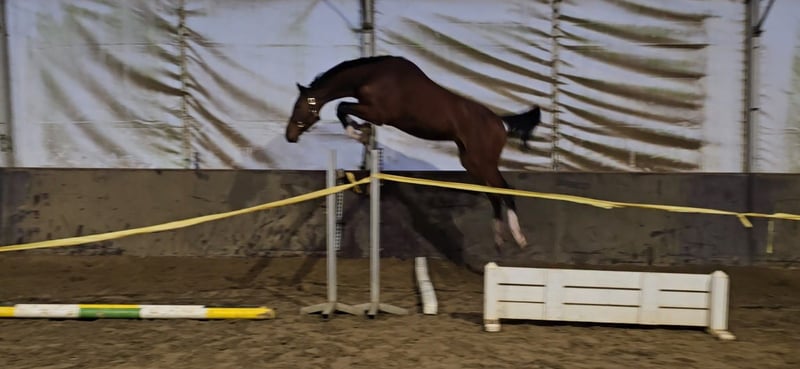 Dit jonge, drachtige paard zoekt een nieuwe ruiter. Makkelijk in de omgang.