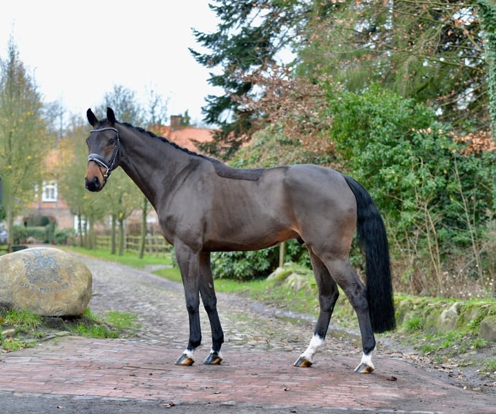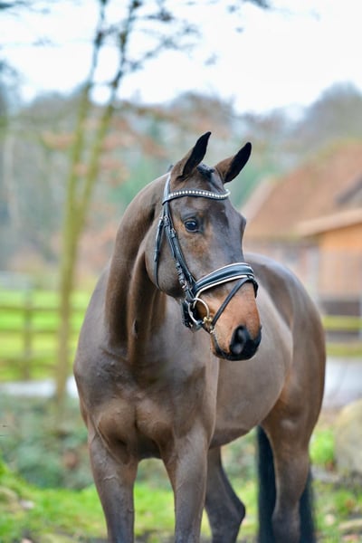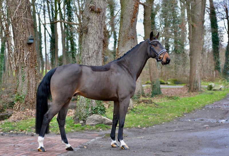 "Fili" ist ein großrahmiger, sehr bewegungsstarker Wallach mit ganz viel Grundqualität. Am Anfang seiner reiterlichen Ausbildung, entwickelt er sich unter dem Sattel hervorragend, verfügt dabei über ganz viel Ausdruck und Mechanik in seinen Bewegungen und ist menschenbezogen, mit der notwendigen Sensibilität dabei stets locker und arbeitswillig. Er stammt aus einem mit erstklassigen Sportpferden gespickten Mutterstamm, seine direkte Vollschwester ist fünfjährig bereits siegreich in Dressurpferdeprüfungen. Erst spät vierjährig angeritten hat er auch 2025 noch Zeit zum ausreifen bekommen. Hier wächst ein tolles Pferd für eine Karriere im Dressurviereck heran.