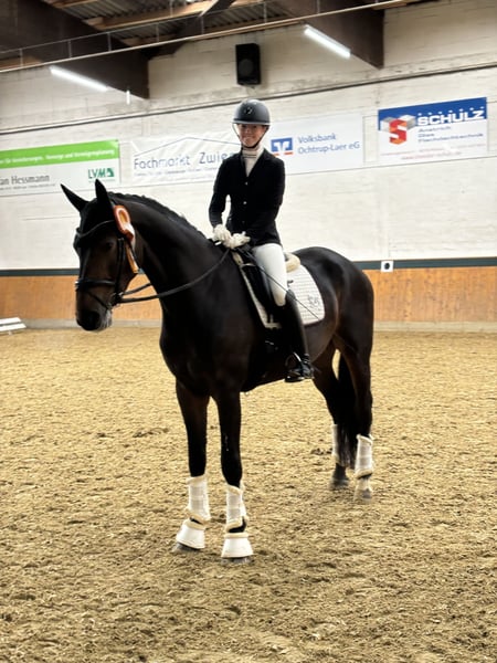 Elegante caballo de Oldenburg, ideal para jinetes de doma ambiciosos. Este caballo, por Rock For Me x Christ, nacido en 2020, destaca por su carácter equilibrado y su movimiento. Demuestra mucho talento y disposición para aprender. El caballo está sano, bien entrenado y espera a una nueva dueña o dueño que continúe desarrollando su potencial. Su carácter amable lo convierte en un compañero confiable tanto en el entrenamiento como en la competición. Estoy a disposición para ofrecer más información y para una visita si están interesados.