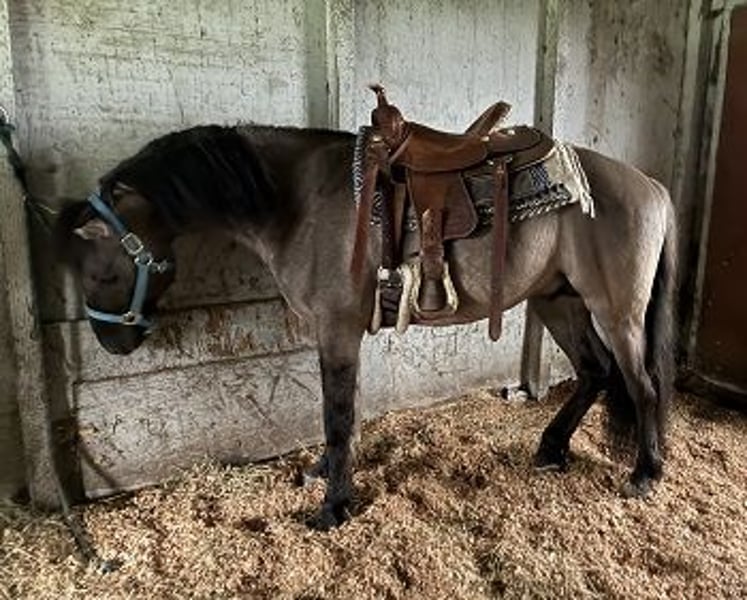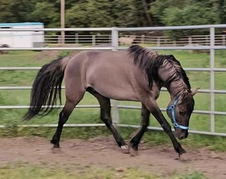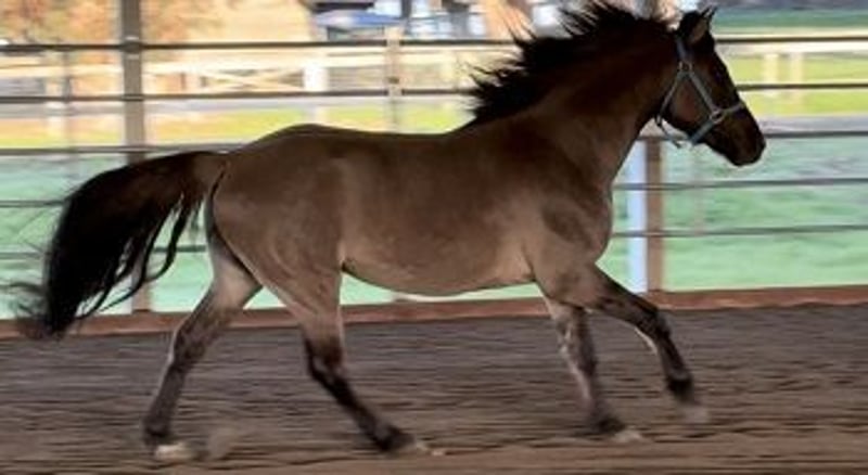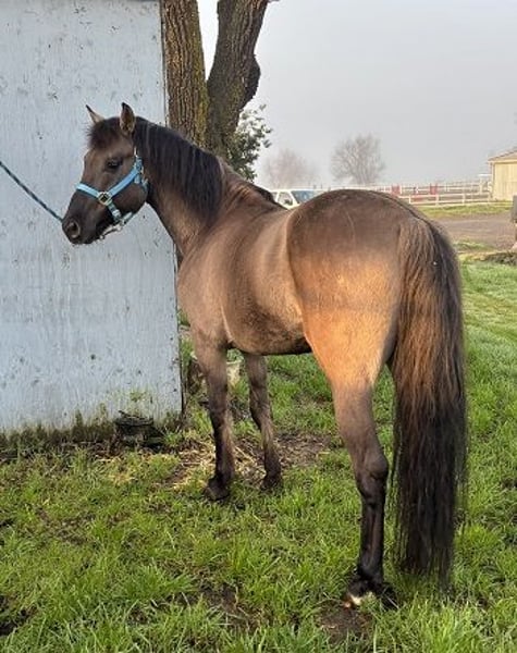 *Now under saddle and ready for his riding education and career* Rubikhan is so gentle and sweet; even a child could handle him! He will be super safe and fun for any rider: Professional, Adult Amateur or Junior! He will be a shining star in Working Equitation, Western Dressage, or any of the Pleasure or Trail Disciplines. Of course, he turns heads everywhere he goes! This boy is the ultimate novelty. Rubikhan is the only small, Grulla, Registered Warmblood gelding IN THE USA! He is a gem of all gems. 100% unique. One of a kind. Proudly Presented by, and in full training to sell with- Clare and Clarity Performance Horse Sales: "Real Steel Rubikhan": 5 year old, 14.2hh, Grullo, Sulphur Horse/Oldenburg, Registered, International Sporthorse Registry (ISR) gelding Sire: "Rubignon" Dam: "Sweet Dream O'War" Rubikhan is like a custom painted Lamborghini. He is small and sleek, flashy and fancy! Only one owner! Born and raised in Sonoma County, Ca. And perhaps best of all: he is extraordinarily sweet! He is a doll! Rubikhan was ground trained, and correctly prepared to be ridden. He then hung out in pasture with his guy buddies until now. Owner selling due to life challenges and changes. Rubikhan is a cute mover, with an especially wonderful canter. He will be marvelous for Western Dressage, Working Equitation, and any of the Trail Versatility/Suitability/Competitive fields. He is very bold and confident, so he should be great on the Trails as well. Completely and totally sound and healthy. Fantastic, black, 'hard as flint', barefoot feet. Clean legs. No history of health or soundness issues. Located at Clare's Training and Sale barn in Petaluma, Ca. CPHS horses are consistently priced reasonable, affordable and fair. For Clare's Program: price is always less important than the perfect person and home! Inquire with Clare if you are interested in this delectable creature! Contact: Clare (707)338-2092 clarityperformancehorsesales@gmail.com https://sites.google.com/site/clarityperformancehorsesales/free-rescue-re-home-horses?authuser=0