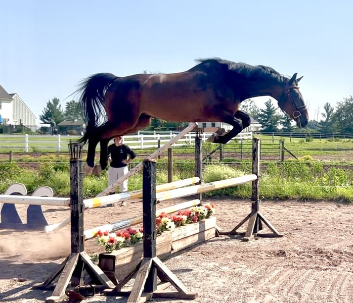 **Oldenburg G 2019, importé, 16.2H (Balou du Rouet x Lady Lancer)** **Maintenant proposé** Fantastique SHOW HUNTER. Éligible à tout ! Radios claires en dossier. Importé l'année dernière et l'avons recommencé correctement, en construisant lentement toutes les bonnes bases. Il a une grande foulée régulière et est super calme ! Il a commencé sa carrière en concours et montre avec plaisir à 2’6” en sautant 3’+ à la maison avec beaucoup de facilité pour bien plus. Aucun préparatif requis. C'est un super chien doux et il a juste besoin de plus de kilomètres et d'expérience - donc pas pour un cavalier timide ou débutant. Nous travaillons sur un changement de pied propre. Situé à Sunset Ridge Farm à Telford, PA. Veuillez envoyer un SMS au (267-688-3961) ou un message privé (ne commentez pas) pour prendre rendez-vous ou obtenir plus d'informations.