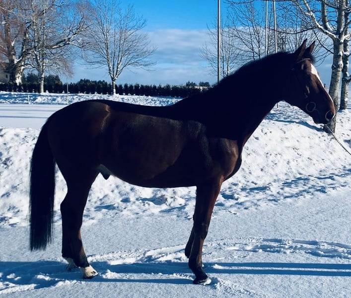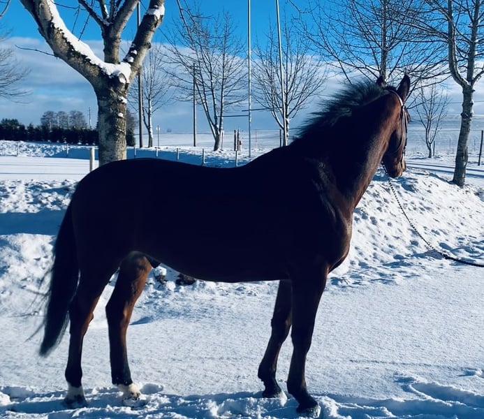 Very handsome and rideable gelding with three very good basic gaits and a good jump technique. He was started under saddle only in spring 2025 and is currently at a secure novice level, now ready for further challenges. For more information, please contact me by phone at 0171/8229733.
