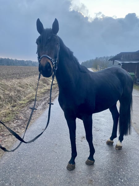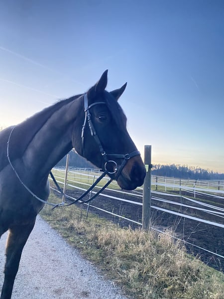 Zum Verkauf steht ein 5-jähriger Wallach mit sehr guten Anlagen für den Sport. Im täglichen Umgang zeigt er sich zuverlässig, freundlich und unkompliziert. Unter dem Reiter arbeitet er motiviert und lernwillig. Er lässt sich gut mit Gewicht einrahmen und ist dabei sensibel im Maul. Ein Reiter mit feiner Hand und entsprechender Erfahrung wird an ihm große Freude haben. Aufgrund seiner Rittigkeit und seines Charakters bringt er beste Voraussetzungen mit, um sich im Sport weiterzuentwickeln. Im Gelände sehr brav, bisher nur Ausritte zu zweit oder in der Gruppe. Ein spannendes Nachwuchspferd für ambitionierte Reiter, die einen talentierten und sensiblen Partner für die Zukunft suchen. Brav beim Tierarzt und Schmied. Weiteres gerne telefonisch +49 15206250987 Besichtigung jederzeit nach Absprache möglich