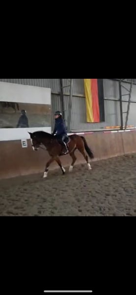 Verkaufe im Auftrag! 2020 geborener Wallach von Baloutaire PS aus einer Marome NW Mutter. Stockmaß: 1,65m (steht aktuell noch im Wachstum) TÜV aus November 2025 vorhanden: o.B. Angeritten (ca. 4 Monate unter dem Sattel) Zeigt sich hier sehr rittig und ist mit guten Grundgangarten ausgestattet. Macht aktuell die ersten Sprünge unter dem Reiter. Beim Freispringen zeigt er sich mit viel Potenzial und Übersicht. Auch von Unterbauten ist er bisher unbeeindruckt. „Baloutelli“ ist geimpft und entwurmt, sowie Schmiede- und Verladefromm. Im Umgang ein sehr anhängliches und verschmustes Pferd. Auch in der Arbeit zeigt er sich sehr motiviert und möchte gerne alles richtig machen. Er kennt sowohl die Reithalle und auch den Reitplatz. Gelände lernt er aktuell kennen. Videos auf Anfrage.