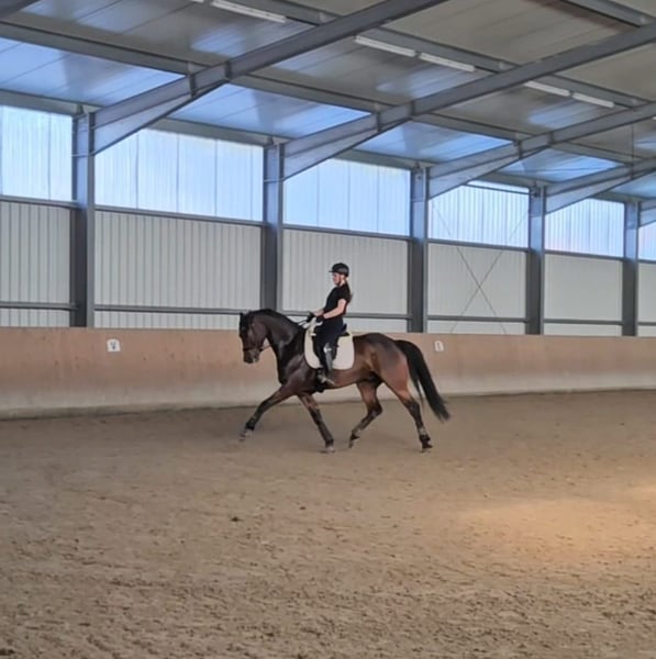 Dressurpferd mit tollen Grundgangarten zu verkaufen. 6 Jähriger 1,66m großer Wallach ( For Dance × Sandro Hit ) Röntgenbilder von 2023 Vorhanden. Dressurpferde A platziert, ist auf dem guten Weg um in nächsten jahr auf Turnier in die Klasse L zu steigen. Im Umgang total Brav! (von Kindern Händelbar) beim Reiten eher ein spritziger Kerl der Lust hat zu arbeiten. Kleine sprünge macht er auch sehr gerne sowie ausreiten usw.. Der Passende Sattel und weiteres Zubehör kann gegen Aufpreis mit erworben werden. Für weitere Fragen, gerne melden!