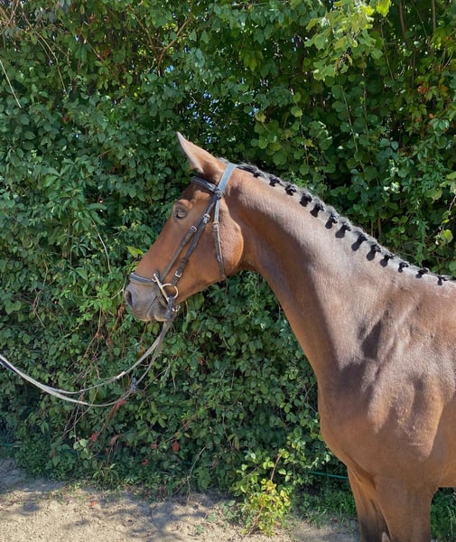 6-year-old bay gelding by Fahrenheit out of a Wilavanda xx mare, standing approximately 16.1 hh. He was backed in summer 2025. With three excellent basic gaits and a good technique over fences, he offers great potential in both dressage and show jumping. Very well-behaved on the ground and under saddle, and appropriately confident in the terrain for his age. Please feel free to contact me via private message or call if interested. Phone: 06154 6682931 Rein videos and a current, valid TÜV are available.