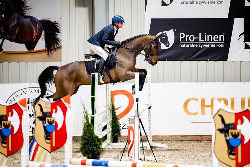 Zilan S (Zinedream - Landprinz I - Azarro), *2020, Oldenburg International (OS), ok. 166 cm Zilan S to niezwykle urodziwy, ultranowoczesny i atletyczny 5-letni wałach, który urzeka wspaniałym charakterem oraz bardzo dobrą jezdnością i nastawieniem do pracy. Całość dopełniają trzy bardzo dobre chody podstawowe, przy czym szczególną uwagę zwraca galop. Obecnie Zilan S startuje w konkursach do klasy P (1,10 m). Ojciec, Zinedream to międzynarodowy zwycięzca 5* Grand Prix, który błyszczy w międzynarodowym sporcie pod wodzą drużynowego wicemistrza Europy Davida Willa. W 2024 roku para świetnie rozpoczęła sezon od zwycięstwa na najwyższym poziomie. Na CSIO5* w Abu Dhabi/UAE Zinedream i David zwyciężyli w Dużej Rundzie 1,60 m. Galopowali do mety około 1,5 sekundy szybciej niż numer jeden na świecie Henrik von Eckermann i błyskawiczny King Edward. Największe sukcesy, takie jak zwycięstwo w konkursie skoków Global Champions League (1,60 m) w Riesenbeck, zwycięstwo na etapie Pucharu Świata w Rijadzie (1,60 m), srebro w Pucharze Narodów w Sharjah/UAE z niemiecką drużyną, zwycięstwo w Grand Prix w Ising, piąte miejsce w 4* Grand Prix (1,55 m) w Münster, szóste miejsce w Grand Prix (1,55 m) w Al Ain (ZEA) oraz cała seria międzynarodowych zwycięstw i miejsc sprawiają, że Zinedream jest światowej klasy sportowcem. Matka, klacz premiowana Luna Llena, jest córką holsztyńskiego ogiera Landprinz I, zwycięzcy próby dzielności ogierów w München-Riem. Babka Antonia odnosiła sukcesy w skokach przez przeszkody do 1,30 m, a jej półsiostra Laura do 1,40 m. Oldenburski ogier Azarro zajął ósme miejsce na Mistrzostwach Niemiec w 1995 roku pod Holgerem Wulschnerem. Ponadto wygrał wiele konkursów skoków przez przeszkody niemieckiej klasy S (1,40 m) i odniósł sukces na CHIO Aachen w 1996 roku. Potomstwo klaczy Luna Llena z sukcesami startuje w skokach przez przeszkody. Cumbela (Chevalier S) (po Cancoon) osiągał międzynarodowe sukcesy do poziomu 1,60 m pod Maureen Bonder (NED), a Carmen S (po Cancoon) startowała z powodzeniem do poziomu 1,35 m. Carmen S jest matką klaczy Stakkato Lazar, która pod Tomaszem Miśkiewiczem (POL) osiągała międzynarodowe sukcesy do poziomu 1,60 m i została Mistrzynią Polski w skokach przez przeszkody w 2023 roku. Jako 5-latka Stakkato Lazar zajęła drugie miejsce w Mistrzostwach Polski Młodych Koni, a rok później zwyciężyła w kategorii sześciolatków. Horsetelex: https://www.horsetelex.com/horses/pedigree/2232303/zilan-s RTG zrobione w wieku 2,5 lat do wglądu - oczywiście jest możliwość wykonania nowych badań. Możliwość organizacji transportu. Więcej filmów wyślę przez Whatsapp.