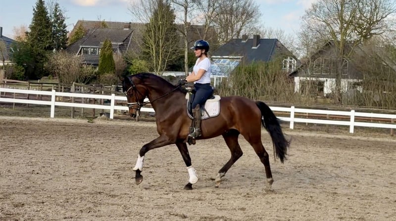 Zum Verkauf steht ein sechsjähriger Wallach von Jovian aus einer Waterford-Mutter, ca. 1,72 m groß, mit hervorragender Perspektive für den Dressursport. Ausbildungsstand • Fünfjährig schonend angeritten • Seit ca. 6 Monaten unter dem Sattel • Aktuell auf Dressurpferde A-Niveau • Sehr rittig und lernwillig • Altersgemäß gefördert, mit klarer positiver Entwicklung Bewegungsqualität • Großer, bergauf gesprungener Galopp mit viel Raumgriff • Ausdrucksstarker, elastischer Trab • Sehr guter, taktsicherer Schritt • Insgesamt drei qualitätsvolle Grundgangarten mit Perspektive Charakter • Sehr brav und unkompliziert im Umgang • Menschenbezogen, aufmerksam und verschmust • Angenehmes Temperament mit guter Arbeitseinstellung Gesundheit • Guter Röntgen-TÜV liegt vor Er präsentiert sich als schicker, moderner Sportpartner mit besten Voraussetzungen für eine erfolgreiche Laufbahn im Dressursport – sowohl für ambitionierte Amateure als auch für fördernde Reiter. Video: https://youtu.be/hMlcVSbY6CE?si=3yDFbh5XGdayQfhR Weitere Informationen oder Probereiten gerne auf Anfrage.