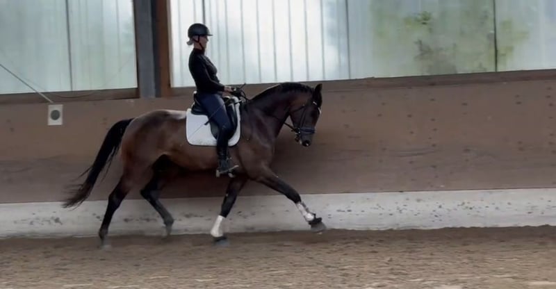 Hoch qualitativer Dressur- Wallach - absolut amateurtauglich - 6-jährig *. Zum Verkauf steht ein außergewöhnlich braver und qualitativ hochwertiger 6-jähriger Dressurwallach, ca. 1,75 m groß, aus bester Abstammung von Blue Hors Zackerey & Fidertanz. Das Pferd ist altersentsprechend solide ausgebildet auf -L-Niveau. Der Außengalopp ist sicher, die Arbeit an fliegenden Wechseln wurde bereits begonnen. Kennt Kandare. Kennt Ausritte / Stoppelfeld. ** Charakter & Rittigkeit: Ein absolutes Traumpferd - der Charakter ist 12 von 10. Unerschrocken, ehrlich, extrem brav und ohne jegliche Unarten. Angenehm rittig, kein heißer Ofen. Absolut amateurtauglich, ebenso für Para-Reiter sehr gut geeignet. Auch auf Turnieren stets vorbildlich, brav und nicht guckig. Gesundheit: TÜV ohne Befund, sowohl klinisch als auch inkl. Röntgenbilder. Ein Pferd, das man einfach gern hat und das seinem Reiter jederzeit Sicherheit gibt. Videos & weitere Bilder nur bei ernsthaftem Interesse. Zudem bitten wir um eine kurze Vorstellung - es ist kein Notverkauf! Das Pferd wird nicht zur Verfügung gestellt
