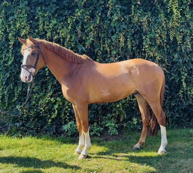 • Approximately 16.1 hh • Eye-catching, colorful chestnut • Multiple placements in show jumping competitions • Current veterinary certificate available A modern, blood-type sport horse with great talent and scope over fences. Born from a top performance lineage – ideal for ambitious riders. Test rides available at any time. Please contact 01712704358