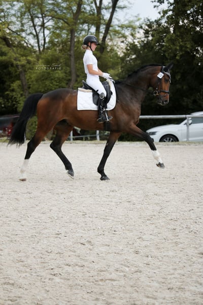 Encanto is a typy 6-year-old Oldenburg gelding with an outstanding pedigree and three powerful, elastic basic gaits that perfectly combine expression, lightness, and rhythm. He has been trained up to Elementary level in dressage and already shows significant potential for the higher classes – a true young talent for ambitious dressage riders. Under saddle, Encanto is full of energy, eager to learn, and highly motivated, while also being sensitive and cooperative. He is looking for an experienced rider who can further develop his talent and give him the opportunity to excel in sport. In daily handling, he is well-behaved, reliable, and uncomplicated – a horse that is simply a pleasure to be around. Approximately 1.5 years ago, Encanto suffered a minor tendon injury, which has fully healed. Today, he is healthy, fully fit, and in training, ready for immediate use. Encanto combines character, quality, and potential – a dressage horse that will inspire its rider for the long term.
