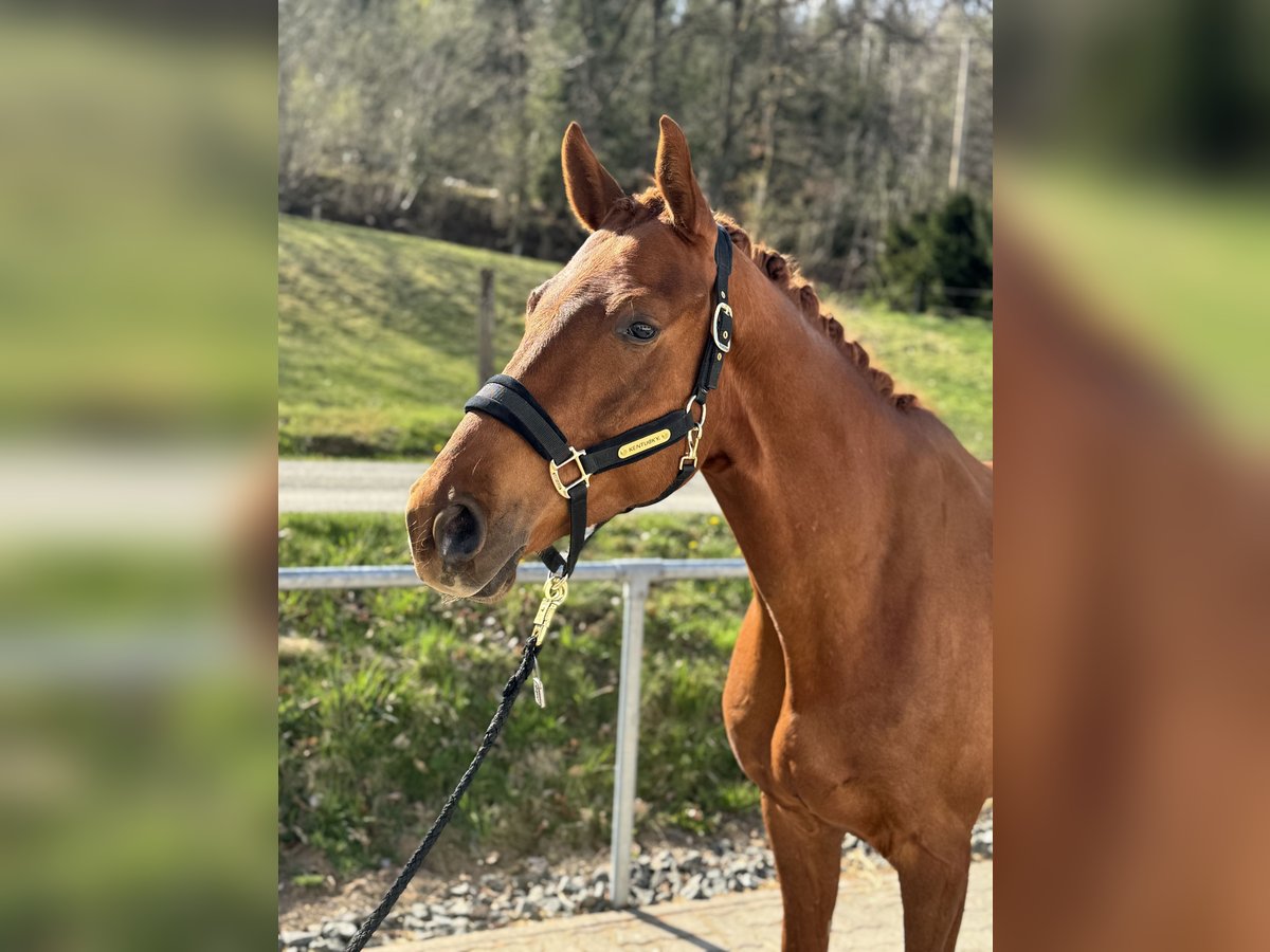 Zam is a 6-year-old gelding who is ready for the competition. He is an expressive, talented horse with a promising pedigree and exceptional rideability traits. He shows a high degree of willingness to collect and is an absolute treasure in daily work, as he is completely unflappable and always affectionate towards humans. A horse to fall in love with. He has also completed his first jumps under the rider completely reliably and safely. Further technical training in jumping could certainly make sense. In handwork under the rider, he has already shown a pronounced talent for piaffe and passage in his first attempts. He is uncomplicated and very well-behaved in handling and while riding out. In principle, Zam is also suitable for children; however, due to his age, we would prefer professional support in the further training of the horse. His peculiarity is that he shows mild symptoms of shivering in the stable, which do not affect him and cause him no pain. We have already had two of our own horses with shivering that have aged healthily and successfully. Therefore, he is being offered well below the value of his quality. We would be happy if he finds a nurturing, loving home.