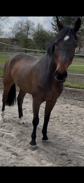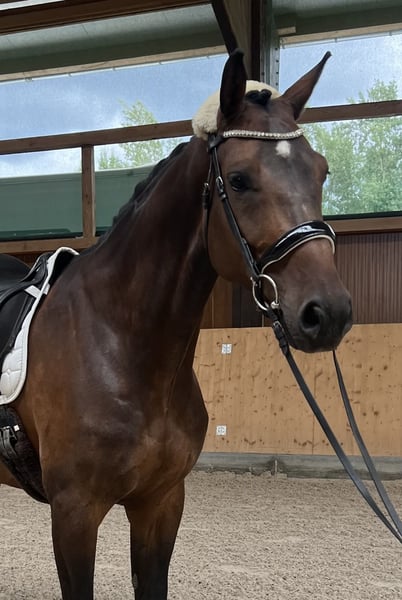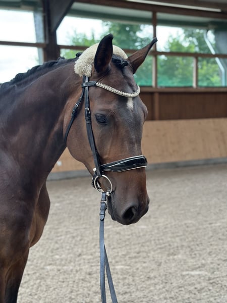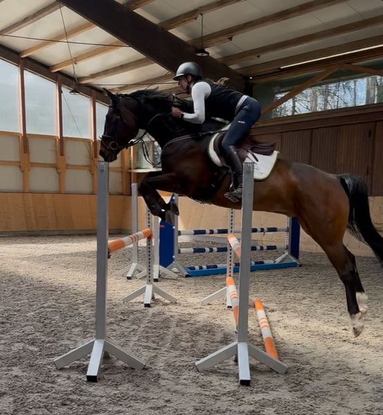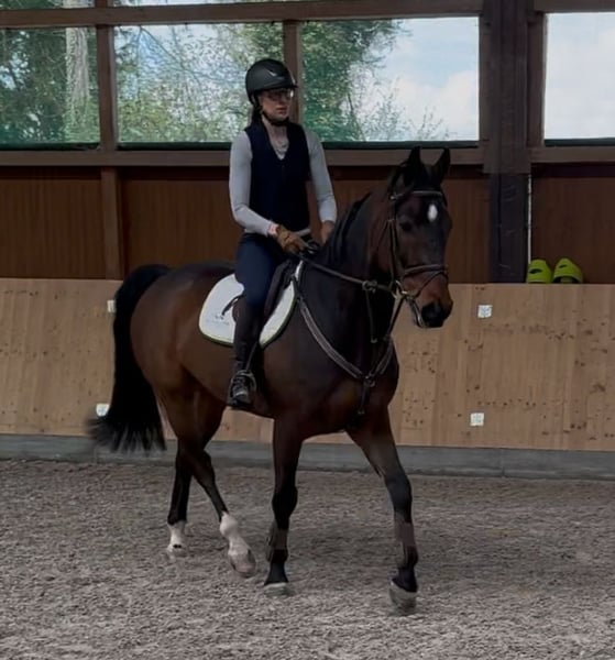 Gesucht wird das perfekte Zuhause für diesen traumhaften Wallach aus eigener Zucht. Rasse: Oldenburger Springpferd Abstammung: Caro Gold x Zatinus x Placido Geschlecht: Wallach Alter: 8 Jahre (geb. 2017) Stockmaß: ca. 1,69 m Springen: 115cm gewonnen, Qualität für mehr Dressur: E&A auf dem Turnier einmal vorgestellt Dieser kompakte, wunderschöne, freundliche und ausgeglichene Wallach überzeugt nicht nur mit seiner vielseitigen Ausbildung, seinem hohen Reitkomfort und Turniererfahrung, sondern auch mit seinem Charakter. Er ist im Stall immer angenehm und ruhig und auch beim Reiten macht er winch jeden Tag Spaß und möchte seiner Bezugsperson gefallen. Er stammt aus einem hocherfolgreichen Mutterstamm (z. B. Mutter selbst S platziert, Schwester S platziert) und wurde sorgfältig und liebevoll ausgebildet. Verladefromm, auf dem Turnier absolut unkompliziert, auch am Übernachtungsturnier. Ich fahre alleine mit ihm zum Training und aufs Turnier. Brav beim Schmied & Tierarzt. Er ist sehr menschenbezogen, sehr angenehm im täglichen Umgang und hat keinerlei Unarten oder schlechte Angewohnheiten. Er wurde auch schon von schwächeren Reitern (E/A Niveau) geritten und gesprungen. Dressur: E und A Dressur auf dem Turnier 1x vorgestellt, nicht guckig & brav, Video vorhanden, ganz leicht an den Zügel zu reiten, fein, locker und angenehm in der Anlehnung Springen: bis 115cm gewonnen und regelmäßig platziert, brav im Parcours, gleicht durch sein Vermögen reiterliche Fehler aus. Dabei hat er immer eine tolle Technik und ist sehr vorsichtig. Bei weiterer Förderung Qualität für mehr! Durch meine Schwangerschaft ist das leider in den letzten zwei Jahren nicht möglich gewesen. Gelände: Wurde im Gelände in der Gruppe angeritten und ist nicht guckig, deswegen gehen wir davon aus, dass er auch Spaß an Geländesprüngen hat. Das wurde aber bisher nicht mit ihm gemacht, da wir reine Springreiter sind. Ausreiten in der Gruppe macht er brav. Ich könnte ihn mir sehr gut als Pferd für eine/n Nachwuchsreiter/in oder Pony-Umsteigerpferd vorstellen. Auch ein ambitionierter Freizeitreiter, der Wert auf ein gut ausgebildetes und zuverlässiges Pferd legt, findet hier einen tollen und leichtrittigen Partner. Es gibt diverse Videos, die ich natürlich gerne auf Anfrage verschicke. Infos zur Gesundheit: - umfassende AKU ohne Befund liegt vor, gute Röntgenbilder - er wird täglich bewegt/gearbeitet und hat keine gesundheitlichen Probleme oder Einschränkungen - er hatte 2023 eine OP. Bericht vom TA liegt vor, seit OP wird er voll belastet und ist klinisch unauffällig. - gesund - unkompliziert in der Haltung und Fütterung. - Vorne Hufeisen, top Hufe - regelmäßig geimpft & entwurmt. - regelmäßig vom Physio angeschaut Bei Interesse gerne eine Nachricht per WhatsApp unter +49 172 1803527. Probereiten nach Absprache möglich, hierfür fällt eine Gebühr von 40€ an, die selbstverständlich beim Kauf verrechnet wird. Zubehör ist nicht im Preis enthalten, ggf. kann ein gut passender Dressursattel, Springsattel und ein Bemer Set dazu erworben werden. Verkauf nur aufgrund von Nachzucht! Platz vor Preis bei absolut passendem Zuhause!