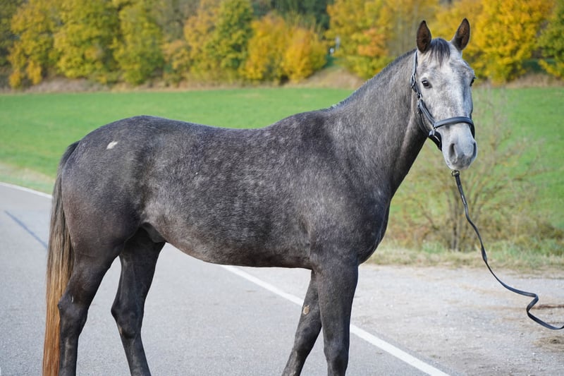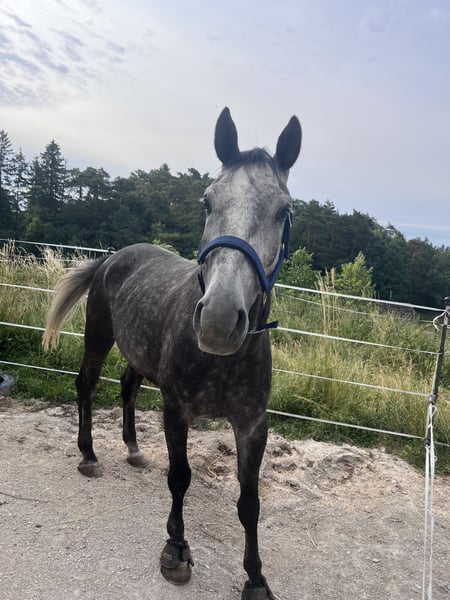 Aufgrund persönlicher Gründe suche ich schweren Herzens für meinen 8-jährigen Oldenburger Wallach ein liebevolles, fürimmer Zuhause bei einem Menschen, der seine ruhige und ausgeglichene Art zu schätzen weiß. Er läuft zuverlässig auf gutem E-Niveau und zeigt Talent über kleine Sprünge – aber ist kein Selbstläufer! Wenn du ein sensibles Pferd mit großem Herzen suchst, welches bei der Dressurarbeit eher gemütlich unterwegs ist - dafür im Gelände oder über kleine Sprünge umso mehr Motivation zeigt wirst du mit ihm einen treuen Partner fürs Leben finden. Er ist brav unter dem Sattel, ohne Unarten, zeigt sich im Gelände aber lebensfroh – kleine Freudensprünge oder leichte Schreckhaftigkeit gehören dazu, sind aber immer kontrollierbar. Außerdem liebt er Bodenarbeit und hat immer Spaß dabei Neues zu erlernen. Amore Mio wurde vor zwei Jahren mit equinem Asthma diagnostiziert. Mit täglicher Bewegung und regelmäßigem Inhalieren ist er stabil und meist normal belastbar. Wichtig ist mir: - Offenstall mit viel Auslauf - bestenfalls tägliche Bewegung - Staubarme Fütterung, idealerweise bedampftes Heu - Liebevoller Umgang ohne Leistungsdruck - Gerne Erfahrung mit Atemwegserkrankungen bei Pferden Er ist schmiedefromm, vorne beschlagen, und im Umgang ein echter Schatz. Einziges Manko: das Verladen in normalen Hängern ist aktuell schwierig. Zubehör wie Inhalator wird mitgegeben, ein passender Sattel kann gegen Aufpreis übernommen werden. Nur in allerbeste Hände. Gelegentliche Besuche wären schön. Platz geht vor Preis.