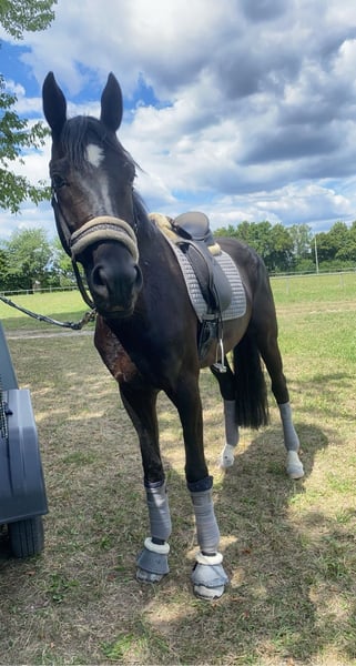 **Sales Advertisement: Oldenburg Gelding** Go to win is a 9-year-old horse with a lovable character and pleasant temperament. He is uncomplicated to handle and brings joy every day. Winnie is ideally suited as a leisure partner for people looking for a reliable horse for beautiful rides, groundwork, or light work. Small competitions are also possible. A loving home is sought for Winnie, where he can make his new person happy as a loyal companion. ! No TÜV! ! Not a pure beginner horse as he is a bit sensitive! We look forward to your message!