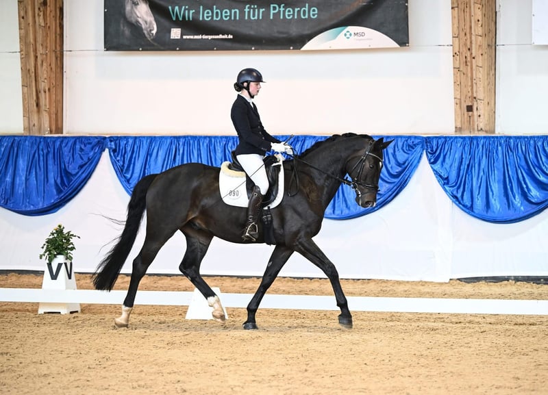 Schicker Allrounder mit Erfolgen und Platzierungen in den Klassen L+M ist er ein erfahrenes Dressurpferd und überzeugt in seinem Niveau, lektionssicher und mit super Einstellung. Als Empfehlung für den anspruchsvollen Dressurreiter ist er angenehm zum Reiten mit seiner traumhaften und bequemen Gallopade macht er das Taxieren sehr einfach.