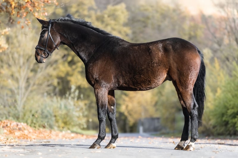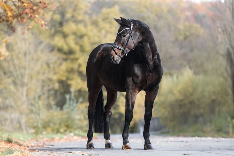 For sale is BOMBASTICO, a very special 9-year-old gelding by Belissimo, standing approximately 173 cm (17.1 hh) with a beautiful dark bay coat. With his kind gaze and gentle, affectionate nature, he quickly wins hearts. He is a true sweetheart, very people-oriented, seeking closeness, and impressing with his calmness and friendliness in daily handling. A horse that simply wants to do everything right and gives his rider a truly good feeling. Due to the previous owner's lack of time, he is currently in a gentle muscle-building phase. At the moment, he is mainly ridden in a forward-downward frame, which he performs patiently, diligently, and with a very pleasant attitude. He has a solid basic education and consistently shows willingness to learn and cooperation under saddle. In the stable routine, he is an absolute treasure. He stands quietly tied up in the aisle, is uncomplicated in handling, and is very social and well-behaved when interacting with other horses. He already knows free jumping and approaches it calmly and relaxed, without haste or stress. This large-framed gelding is ideally suited as a leisure horse for higher-level riding. He is the perfect partner for riders seeking a reliable, sensitive, and balanced horse with whom they can enjoy relaxed riding and also continue to develop. With further training, he has great potential and will surely bring his owner lots of joy, trust, and wonderful shared moments. He is familiar with dogs and tractors. Location: 53578 Windhagen. If you are interested or have questions, we look forward to hearing from you – 0176-82205841 A meeting is possible almost at any time. For a viewing and test ride, we charge a flat fee of €30. Of course, there is also the option to have your dream horse transported directly to your home.