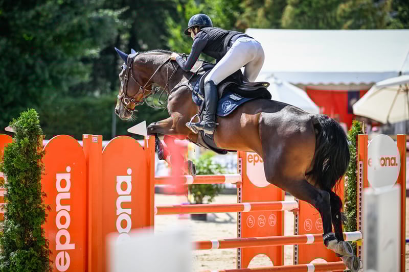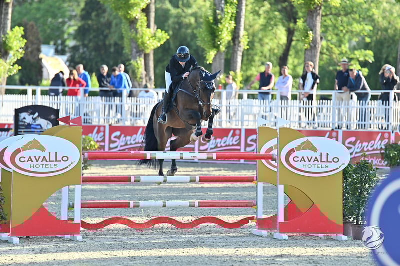 Caribbean is a 9-year-old gelding who has already competed successfully up to the S** / 145cm level. He is a horse with an incredibly reliable attitude! He always jumps, and he doesn't know how to stop. No matter the distance, whether it's a wall, open water, etc., he always jumps. Definitely a horse with immense potential for high-level sport. However, due to his easy and uncomplicated rideability, he is also a great opportunity for a child, junior, or young rider in the upcoming ranks. Caribbean forgives any rider mistakes and is therefore an absolutely dependable horse. He has been successfully shown up to 145cm by a junior rider.