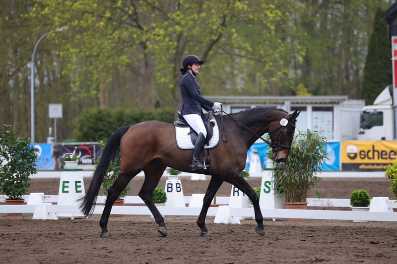 Devil‘s Darling, genannt „Döni“ Er ist in der Dressur mehrfach bis A* platziert und im Training haben wir bereits mit Lektionen der Klasse L begonnen. Im Springen wurde er nie gefördert, da ich dazu selber keine Ambitionen habe. Im Hinblick auf seine Abstammung und sein Vermögen, das er im Freispringen zeigt, hat er hier jedoch durchaus Potential. Döni geht alleine und in der Gruppe ins Gelände und ist schmiede- und verladefromm. Er ist kein Anfängerpferd und braucht einen sicheren Reiter. Ich suche für ihn jemanden, der Zeit und Geduld hat, ihn weiter auszubilden, da er ein sensibles Pferd ist, das unter Druck schnell in Stress gerät. Aktuelle Röntgenbilder der HWS und des Rückens liegen vor. Eine aktuelle AKU liegt nicht vor. Bei Interesse schreibe mir gerne eine Nachricht.