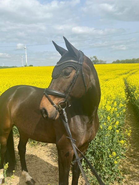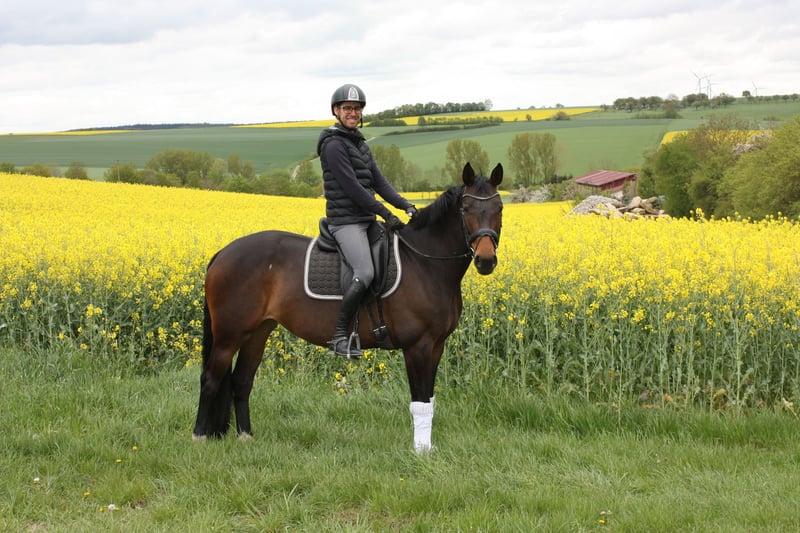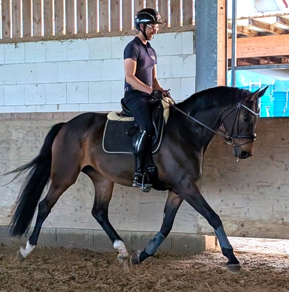 Anthea THD Made for eventing = > Różne miejsca A w konkursach ujeżdżenia i skoków przez przeszkody http://thd.tophorsedressage.ch/?page_id=2063 Ze wschodniofryzyjskiej linii Wilmy, OF 127 => Koń odnoszący sukcesy => "Light Money" 1.60 m skok => https://www.horsetelex.de/horses/pedigree/315296 pod Andreasem Knipplingiem => http://www.andreas-knippling.de/uber-mich/ Anthea THD, pochodząca od Raccato KWG, uplasowana na poziomie zaawansowanym (S), od matki Abanos x Lanciano x Landsieger x Gervantus, jest klaczą o absolutnie podwójnym usposobieniu. Anthea THD jest przeznaczona zarówno dla wymagających zawodników, jak i jeźdźców rekreacyjnych. Wykazuje się wystarczającą ostrożnością i świetnym refleksem w skoku, a także genialną mechaniką kłusa i dużą ekspresją w pracy ujeżdżeniowej. Klacz jest absolutnie łatwa do jazdy, wystarczająco wrażliwa i chętna do ruchu. Pochodzi bezpośrednio od hodowcy i jest absolutnie niezniszczona. Obecnie jest profesjonalnie ujeżdżana i przygotowywana do pierwszych startów w zawodach w ujeżdżeniu i skokach. Jest dobrym kierowcą przyczep i transporterów i uwielbia wychodzić w teren. Zawsze jest łatwa w obsłudze i prowadzeniu, nawet w grupie lub z koniem ręcznym. Ponadto klacz regularnie pracuje na podwójnej lonży i bardzo dobrze skacze swobodnie. Klacz jest również bardzo przyjazna w codziennym kontakcie i jest bardzo zorientowana na ludzi. TÜV z 03.09.2019 jest już dostępny.