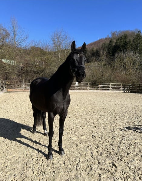 Zum Verkauf steht Takara, eine am 25.04.2016 geborene Stute mit erstklassigem Pedigree und ansprechender Optik. Als Tochter von Blue Hors Dreamline und Enkelin von K2 vereint sie sportliche Eleganz mit einem korrekten Gebäude. Sie wurde bereits als Fohlen prämiert und befindet sich seit dem Absetzen in einer Hand (direkt vom Züchter übernommen). Mit einem Stockmaß von ca. 1,68 m ist Takara auch für größere Reiter bestens geeignet. Ihre Ausbildung begann erst im Alter von vier Jahren, wobei großer Wert auf einen behutsamen und schonenden Start in ihr Reitpferdeleben gelegt wurde. Seither wird sie freizeitmäßig gefördert und zeigt sich dabei sehr unkompliziert – auch bei Auswärtsfahrten. Trainingseinheiten auf fremden Anlagen meistert sie souverän. Im Gelände präsentiert sie sich als zuverlässige Begleiterin, sowohl alleine als auch in der Gruppe. Im täglichen Umgang sowie bei der Pflege überzeugt Takara durch ihre freundliche, menschenbezogene Art. Sie schätzt abwechslungsreiche Arbeit und zeigt besonders viel Freude an der Doppellonge sowie an Bodenarbeit. Takara ist ein rittiges Pferd mit guter Arbeitseinstellung. Aufgrund ihrer Feinfühligkeit und Sensibilität ist sie jedoch kein Anfängerpferd. Sie benötigt eine feste Bezugsperson, die ihr Sicherheit gibt, sowie ein ruhiges, stressfreies Umfeld. Ihr Wohlbefinden steht an erster Stelle: Da sie aktuell eine Haltung mit direktem, jederzeit zugänglichem Paddock genießt, wird sie nicht in reine Boxenhaltung abgegeben. Ein Platz mit viel Bewegung, frischer Luft und Sozialkontakt ist Voraussetzung. Da mir ein bestmöglicher Lebensplatz und eine liebevolle Bezugsperson besonders wichtig sind, gilt ausdrücklich: Platz vor Preis.
