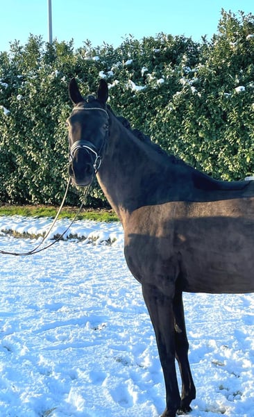 For sale is an elegant Oldenburg mare suitable for high-level dressage competition. Meggie impresses with her consistency in lessons and a very good work ethic. Her friendly and eager-to-learn nature makes her a reliable partner in training and competition. She is very pleasant to handle and has no vices. Additionally, Meggie also enjoys jumping and easily clears a small course (up to 1.00 m). With further training, this is certainly not her limit, as she demonstrates much more ability when free jumping. She is also reliable in the field and calmly follows her rider’s guidance. Viewing appointments can be scheduled by arrangement. An up-to-date veterinary certificate is available.