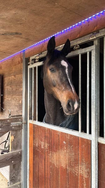 NINA NEGRA (Negro x Averner) Nina ist eine 10-jährige Stute mit einer Schulterhöhe von ca. 1,73 m. M Dressur, B Springen und B Vielseitigkeit (Übungscross). Nina ist eine Stute mit einem goldenen Charakter, unglaublich arbeitswillig und nichts ist ihr zu viel. Sie liebt neue Abenteuer und das ständige Lernen. Momentan springen und kreuzen wir auf B-Niveau, aber sie hat definitiv Potenzial für mehr! Nina ist sehr bodenständig, aber kein "Schlaffi", daher nicht für echte Anfänger geeignet. Bei Ausritten ist sie ebenfalls sehr brav und 100% verkehrssicher. Haben Sie Fragen oder Interesse? Schreiben Sie eine Nachricht, rufen Sie an oder senden Sie eine E-Mail an die untenstehenden Kontaktdaten. 0682393901 Sleejenneke9@gmail.com
