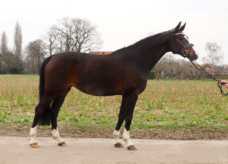 Here, too, color and a double disposition are guaranteed! Incredibly strong moving, beautiful mare, standing in stallion type, in foal for February 2025 by the champion stallion, HLP winner and BUCha finalist "Cafe au lait"! Cafe au lait has been attracting attention for several years with his incredibly successful offspring in dressage and show jumping at advanced level! He himself was a Bundeschampionat finalist under Philipp Weishaupt and has been successful up to advanced (S***) level show jumping, but also has three enormous gaits and has been trained to advanced (S) level dressage. Stationed with Paul Schockemöhle, he has already sired a number of internationally successful show jumpers, including "Royce", victorious in the FEI CSI5* $500,000 Rolex Grand Prix Wellington. The licensed Cafe's Champus, who was bred by us, was runner-up in the Young Horse World Championships under Rene Tebbel. Also all licensed and from our breed: Cafe Junior (Cafe au lait x Silvio I), placed internationally in advanced (S*) level show jumping competitions. Cafe's Columbo (Cafe au lait x Belstaff), successful in France. Cafe`s Star (Cafe au lait x Calido I): licensed and successful in advanced (S) level show jumping in Iran. Cafe's Don Rubin (Cafe au lait x Donnerhall), successful in his first tests for young show jumpers. Other young horses out of jumping-oriented dams have already placed several times in tests for young dressage horses from novice to medium level and are remarkably strong-moving and clear-headed. The "Cafe's" are also convincing across the board in the big arena: Cafe's "Casimir" (Cafe au lait x Calido x Grannus) was the celebrated top prize winner at the Oldenburg Elite Auction, was a series winner in medium (M) level dressage horses at a young age, and was a series winner again in his first advanced (S) level dressage tests as a 7-year-old! He is now victorious in international Intermediaire I classes. Kasselmann's mare Cafe's Caletta (Cafe au lait x Calato) has also already won advanced (S) level dressage and international Grand Prix. Cafe's Matts (Cafe au lait x Don Frederico) was the second most expensive dressage horse at the Oldenburg Summer Mixed Sales. All offspring are characterized by high rideability values, dream character and double disposition! Our foals receive daily mineral feed and foal starter, regular EQUISTRO Haemolytan and Ipaligo Foal, worming and a farrier are also a matter of course. The dams also receive special mare feed, juice feed, linseed oil and hay ad libitum throughout their pregnancy. This ensures that our broodmares and their offspring are always in the best of health! If the pedigree is suitable, trade-in of broodmares is also possible. There are always a few more pregnant broodmares and foals for sale, some of which can be found in the other advertisements. We produce around 20 cafe au lait foals every year. Viewing is possible daily. Video requests etc. only possible via WhatsApp.
