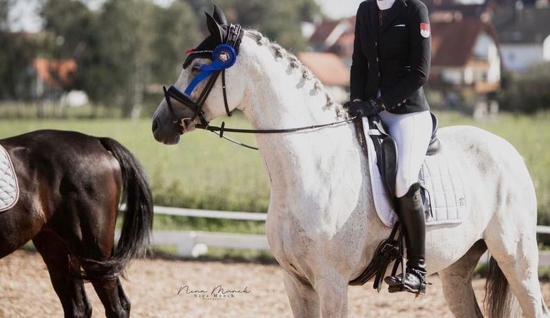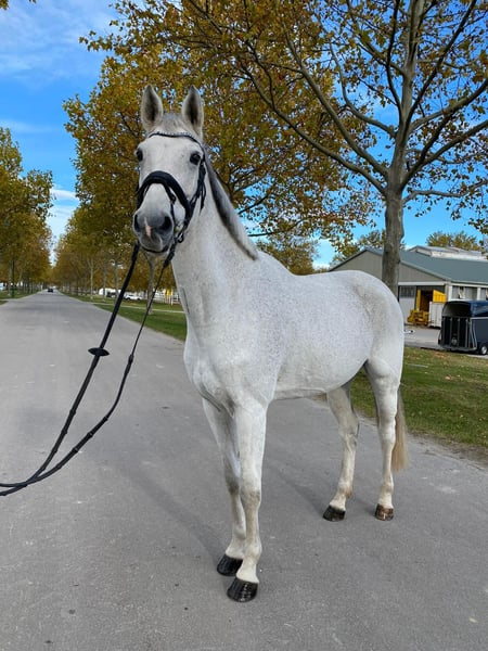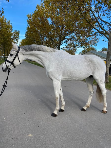 Quitschie is a mare born in 2015, approximately 16.1 hh, an Oldenburg by Casiro II out of Balou du Rouet. Quitschie is truly an all-rounder: - Placed in A** dressage competitions, suitable for L dressage - Placed in A** show jumping - Successful in L-level jumping - Competed in eventing up to the L class She enjoys her daily work, is always motivated and attentive. The mare is very brave and well-behaved under saddle. She responds to subtle aids and moves softly in contact. Not suitable for complete beginners, as she requires a rider who is able to ride her with finesse and consistency. Quitschie has a very good, active walk with plenty of freedom of movement, as well as a good canter with high collection potential. In handling, she is a true treasure—very friendly and curious. She is farrier- and loading-friendly.