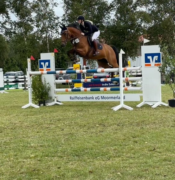 **Annuncio di vendita: Cavallo da salto Oldenburger** Lainey, nata nel 2014, è una elegante cavalla Oldenburger con un'altezza al garrese di 160 cm. La sua corporatura snella e sportiva la rende compatta e agile – eppure salta con facilità percorsi fino alla categoria difficile (S). Ha una genealogia molto buona e si è già dimostrata una vera collezionista di premi. Lainey non impressiona solo per le sue capacità sportive, ma anche per il suo carisma e il suo carattere genuino. Per lei desidero una casa amorevole e fiduciosa, dove possa essere trattata con calma, pazienza e affetto.