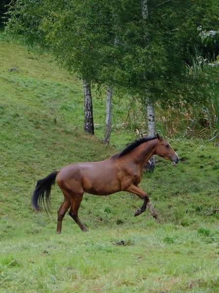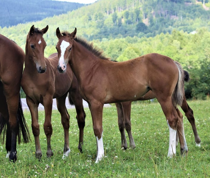 For sale: Oldenburg (Oldenburger Springpferd) mare, born 23 June 2014, approximately 166 cm at the withers. A mare with very good pedigree (details available in the attached passport). The mare has been retired from sport due to an injury – she currently requires no treatment and is successfully used for breeding. ✔️ Proven broodmare – has produced 2 foals ✔️ Covered 3 times – conceived on the first attempt each time ✔️ Currently in foal to the young stallion Asgreen 2000 Z ✔️ Excellent mother – produces intelligent, well-conformed foals Offspring: bay filly by Brantzau grey filly by Chacfly PS Easy to handle in daily care, during grooming procedures and transport; calm on pasture and in a herd; good temperament, willing to cooperate. A mare with harmonious conformation, very good jumping technique, and excellent breeding potential.