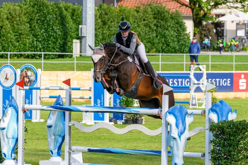 Zum Verkauf steht eine 12-jährige Oldenburger Stute mit viel Qualität und tollem Charakter. Die Stute ist ca. 1,68 m. Sie überzeugt durch ihr Sprungvermögen, ihre ansprechende Optik sowie ihre elegante Ausstrahlung. Sie ist sehr leicht zu reiten, steht fein a den Hilfen und eignet sich für den ambitionierte Reiter unter anderem im Children Bereich. In den letzten fünf Jahren wurde sie von einer jugendlichen Reiterin in der Children- und Juniorenzeit vorgestellt. In dieser Zeit konnten sie Nationenpreise gewinnen und sich auf den Deutschen Meisterschaften gut platzieren. : Die Stute ist bis zur Klasse S** (1,45 m) platziert. Aktuell wird sie auf solidem M-Niveau (bis 1,20 m) vorgestellt. Sie ist gesund, und hat Röntgenbilder ohne Befund. Weitere Infos gerne auf Anfrage.
